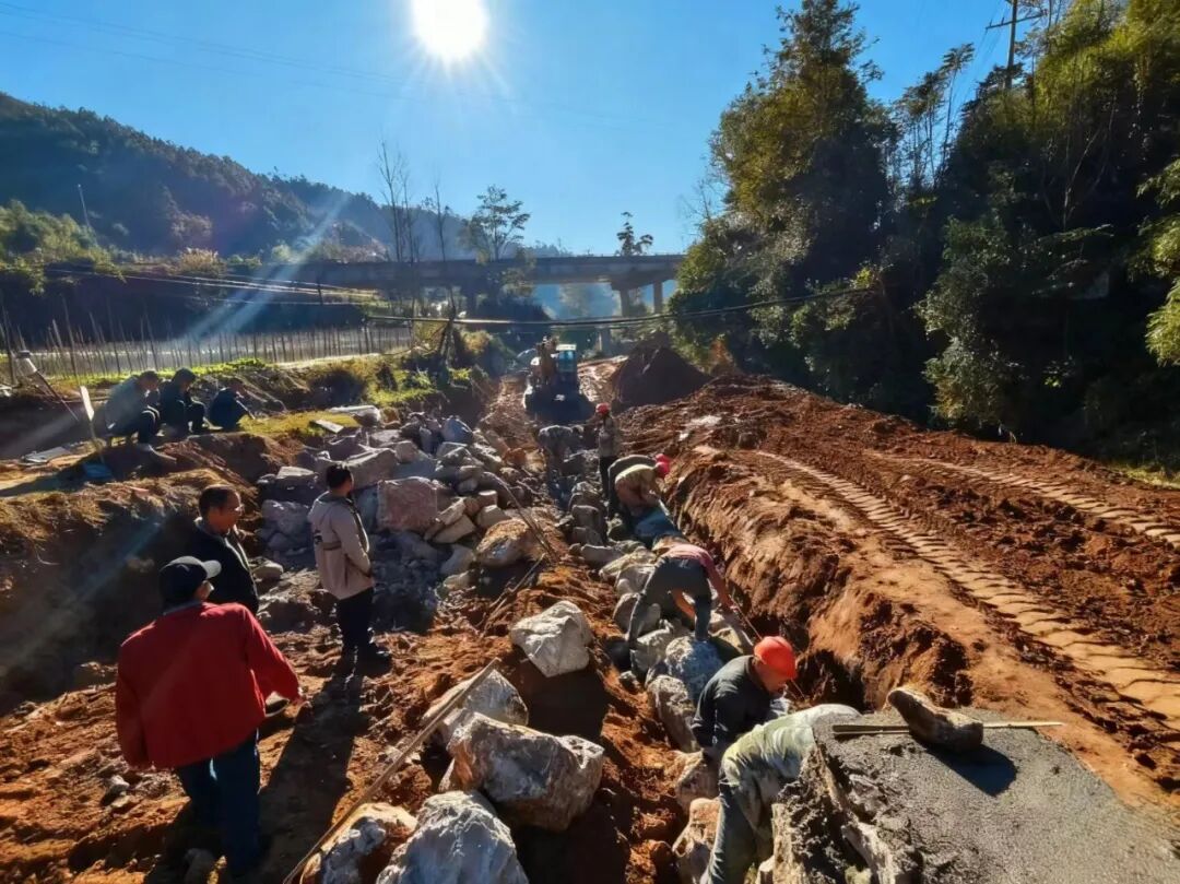 工程推进中,富泉村创新 “党建 + 防汛” 模式,将党组织优势转化为治水效能。为解决施工中的占地、运输等问题,当地累计召开12场群众协调会,村组干部带头上门倾听意见、解读政策,引导群众主动支持建设。党员干部自发成立志愿服务队,协助施工方搬运材料、维护秩序;村民们积极配合,主动让出自家闲置土地、帮忙宣传政策,形成 “党组织引领、群众齐参与” 的良好氛围,为工程顺利推进扫清障碍。