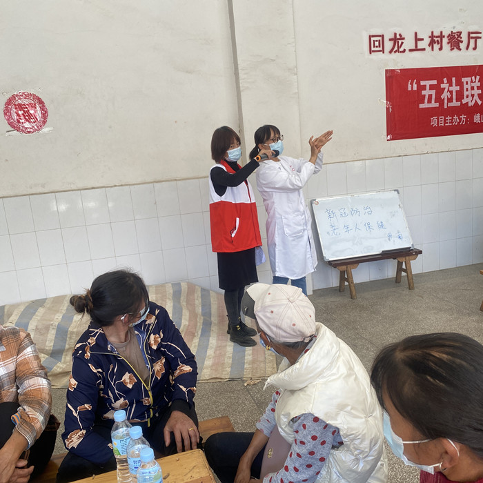 为持续开展新时代文明实践志愿服务和“暖民心服务”活动,充分提高老年人健康保健意识,近日,双江街道登云社区新时代文明实践站联合社区卫生室,在回龙上组餐厅开展“情系群众暖心服务”活动。