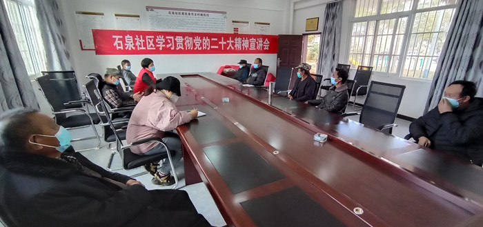 近日,双江街道石泉社区组织党员到各村民小组开展学习党的二十大精神宣讲活动。
