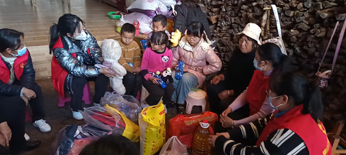走访慰问中,县妇联巾帼志愿服务队逐一登门为困难妇女儿童送上慰问品,有衣服、鞋子、书包、帽子等,还有油、大米、水果、糕点,祝福她们春节快乐。每到一家,县妇联主席都与困难妇女儿童面对面沟通,聊家常,问冷暖,仔细询问她们的生活,叮嘱她们保护好身体,注意防寒,做好疫情防护,鼓励困难妇女儿童要直面困难,走出困境。(孙艳)