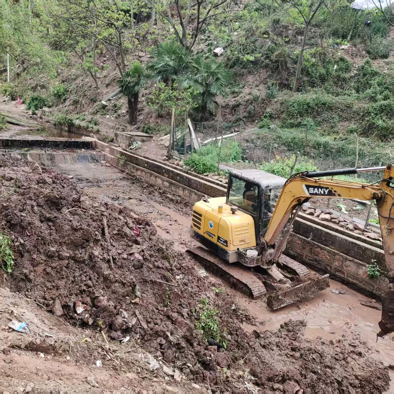 本次清淤范围覆盖厂上一组、厂上二组、坡脚组、沙里铺组,涉及河道长度约2000米,将打通河道“肠梗阻”,破解内涝难题。施工现场,挖掘机与运输车协同作业、有序推进,高效清运淤积的黑色淤泥及杂草杂物。施工方采用分段施工、错峰作业的方式,在保障清淤质量和进度的同时,最大限度降低对村民生产生活的影响。