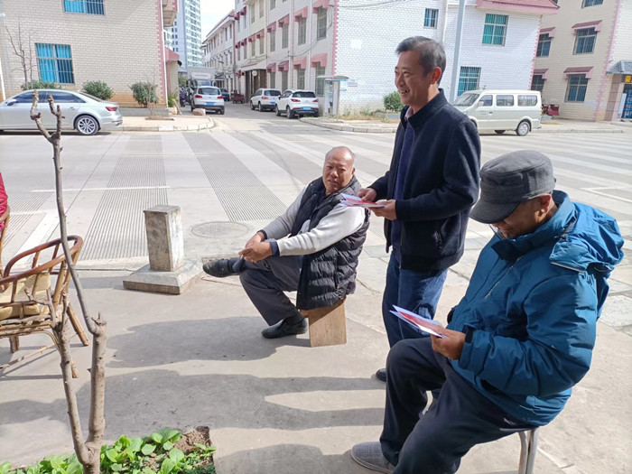 社区党总支书记柏永刚带队,逐一到社区居民小区群众经常聚集的地方,以访亲友、拉家常的方式和群众交流,询问群众近期的生活、生产情况,对小区的管理工作和社区工作的意见、建议,最后再向群众发放《党的二十大精神宣传册》,由浅入深的向群众讲解党的二十大精神。