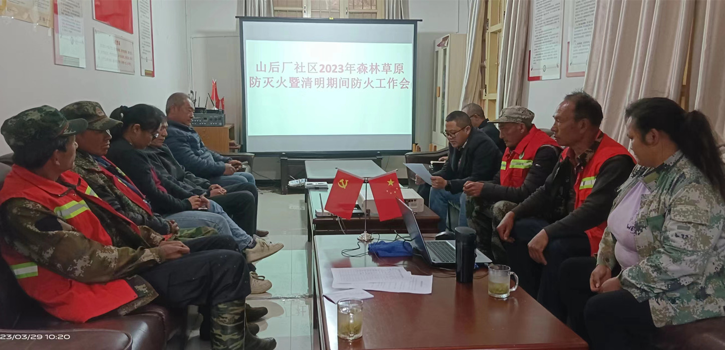 为做好山后厂社区2023年森林草原防灭火暨清明节期间森林防火工作, 3月29日,双江街道山后厂社区召开森林草原及清明节防火工作会。村组干部、护林员参加会议。