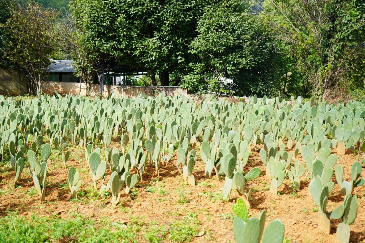 为破解销售难题,基地早早搭建起多元渠道。“我们将引进专业主播在抖音平台直播带货,同时与安宁仙人掌企业建立合作,多的鲜果直供企业,缺货时也能从企业调货补充。” 郝继文表示,线上线下联动的模式已打通产销闭环,为明年丰收后的销售筑牢基础。对于当地村民而言,仙人掌基地已成为“家门口的饭碗”。土地流转后,村民从传统农耕中走出来,转身成为产业工人。基地优先雇佣本地群众从事管护工作,灵活的务工时间与每日110元的稳定收入,让“顾家”与“挣钱”得以兼顾,乡亲们的日子越来越有奔头。
