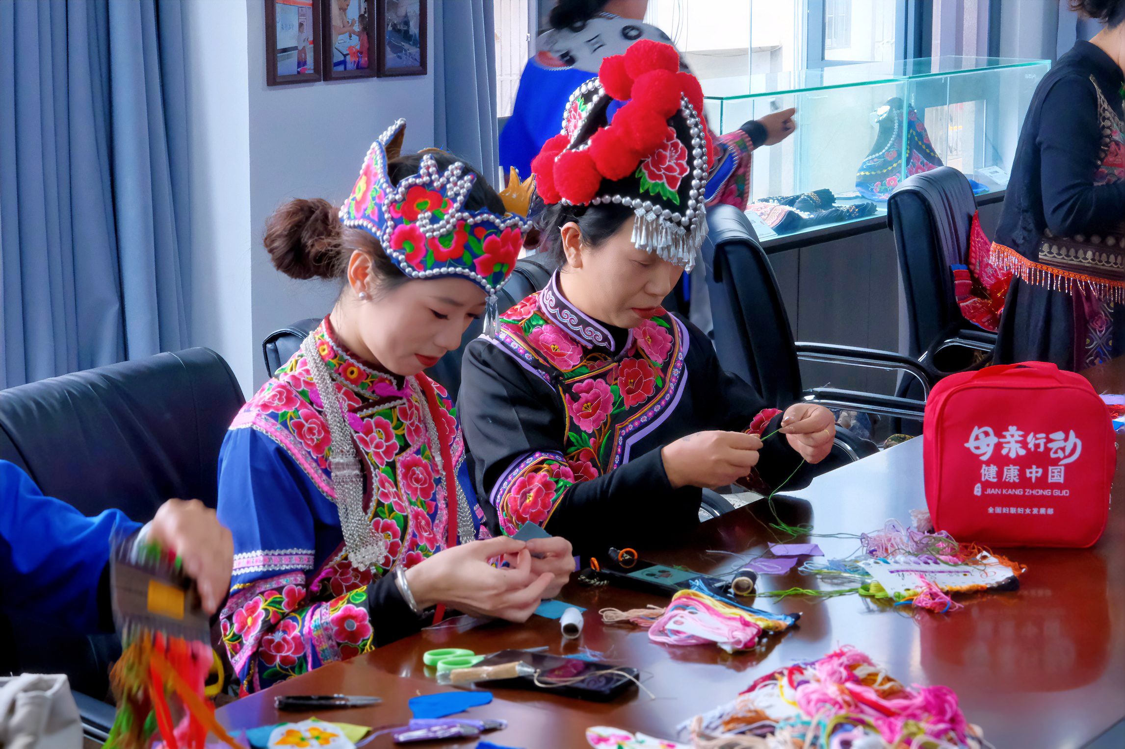 与此同时,“党建+妇建+彝绣”工作坊同步拉开帷幕,中国服装设计师协会会员、非遗传承人刘翠玲带领20名学员开启创作之旅。“传统彝绣要想焕发新生,必须融入现代审美,例如这朵山茶花的针脚可以更灵动些。”刘翠玲一边演示针法,一边讲解“非遗+文创”的创新理念。随后,刘翠玲带领学员们进行荷包制作。绣娘们手中的丝线在香料填充的荷包上穿梭,谈笑间交流技法心得,原本陌生的邻里渐渐熟络。据悉,成品将在社区工作室展示展销,销售收入扣除成本后全额返还绣娘。这一模式不仅帮助绣娘实现居家灵活就业创业、推动非遗文化活态传承,更有效促进“指尖技艺”到“指尖经济”的正向转化。
