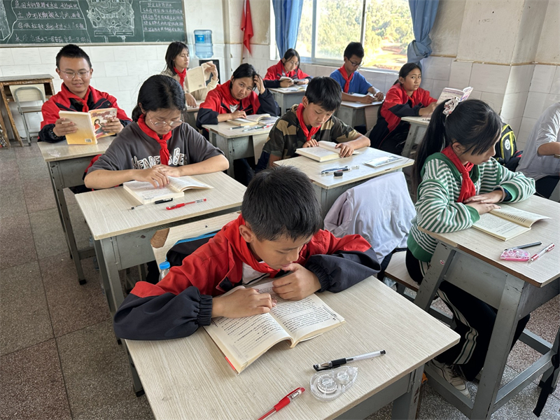 与此同时,阅读的种子也在大龙潭中心小学深深扎根。大龙潭中心小学将阅读纳入常规教学,每周三固定开设一节阅读课,已成为孩子们最期待的时光。在这节课上,老师们引导学生阅读经典名著、童话寓言,并鼓励他们走上讲台,分享自己的读书心得。此外,学校还开展以传统文化为主题的读书活动,如“走进唐诗宋词”赏析会、“中华美德故事”演讲比赛等,通过知识性、趣味性兼具的竞赛活动,让孩子们在书香墨韵中汲取中华优秀传统文化的滋养,增强文化自信与民族自豪感。一名五年级的学生在参加完经典诵读比赛后兴奋地说:“我现在越来越喜欢古诗词了,觉得里面充满了智慧和美感!”这片浓郁的书香,正伴随着祖国的幼苗茁壮成长。